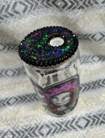 💎Clear Glass cup with Sticker and Vinyl design Glitter Rhinestones Lid or Rhinestone Lid.
